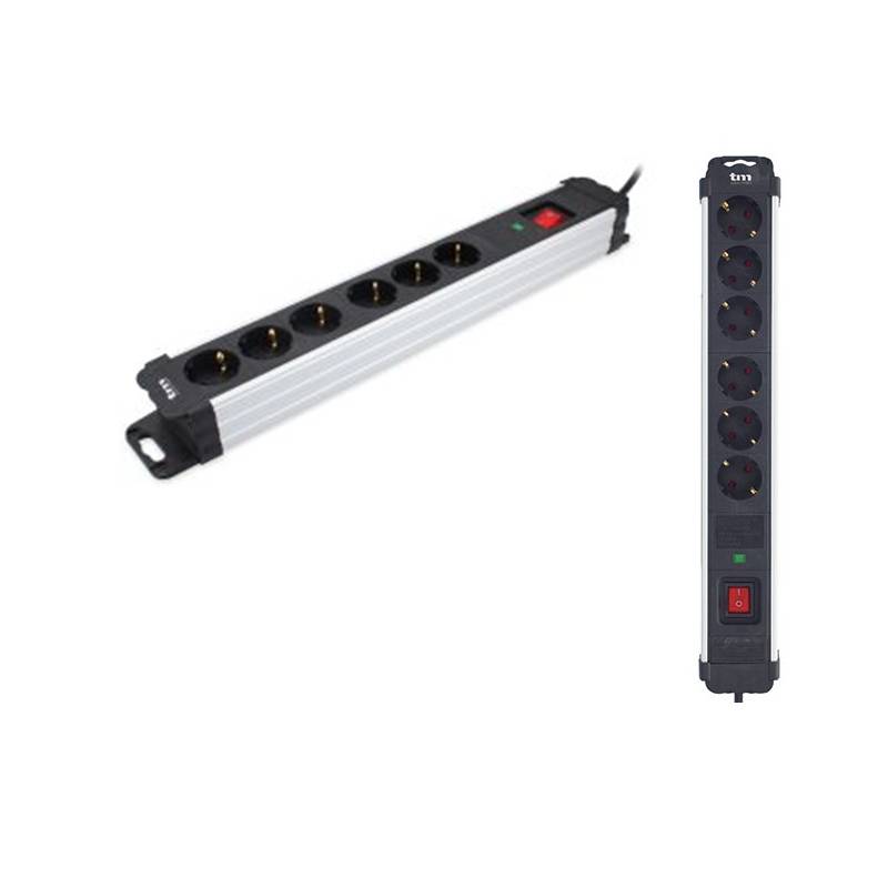 Base múltiple negra 6 tomas acabado aluminio TM Electron