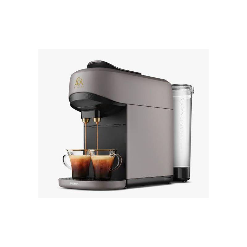 Cafetera LOR Barista PHILIPS LM9512/20 ABSOLU L``OR Barista Absolu Gris. Cafetera Espresso Cápsulas. La única cafetera que prepara dos cafés al mismo tiempo o un café individual en el toque de un botón gracias al reconocimeitno automático de la cápsula: individual o doble. Sistema abierto porque es compatible con las cápsulas individuales disponibles en el mercado (Nespresso y otras marcas). Sistema exclusivo por la innovación de la cápsula doble L``OR Barista que permite preparar dos cafés en el toque de un botón para compartir o un café doble para un sabor más intenso. Cápusula individual: ristretto, espresso, lungo. Cápusla doble L``OR Barista: doble ristreto o dos ristrettos a la vez, doble espresso o dos espressos a la vez, doble lungo o dos lungos a la vez + Función extra intenso Barista Boost. Función Ice Brew. 19 bares de presión. Depósito de agua 1,2L. Movible (laterales o trasero). Encendido y apagado directo. Aviso dedescalcificación y de compartimento de cápsulas lleno.