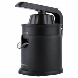 Exprimidor directo al vaso. Ideal para vasos XL de 14 cm. Encendido y apagado automático. Potencia de 60W. Boquilla metálica. Sistema antigoteo. Tapa antipolvo. 1 cono universal. Color negro/metal.