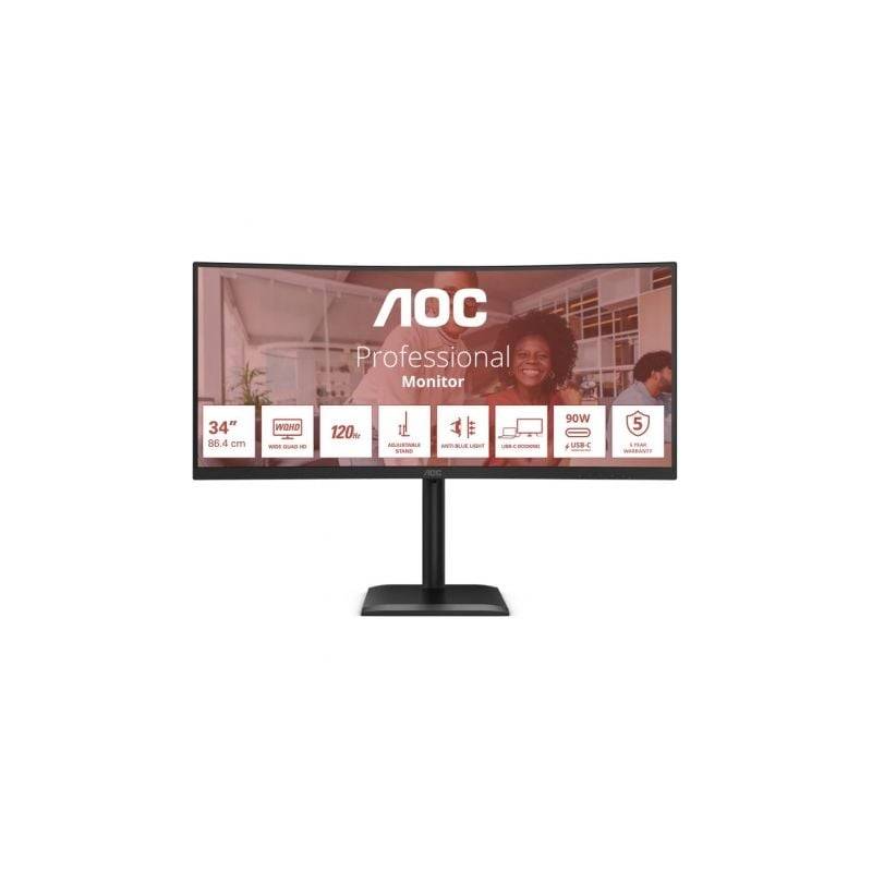 Monitor Profesional Ultraparonámico Curvo AOC CU34E4CV 34"/ WQHD/ Multimedia/ Regulable en altura/ Negro