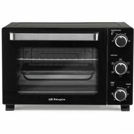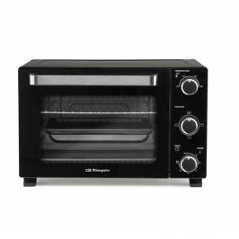 Horno eléctrico de sobremesa de 28 litros. Potencia: 1500w. Temperatura regulable de 90 c 230 c. Piloto luminoso de funcionamiento. Luz interior para controlar la cocción. Temporizador de 60 min con señal acústica de parada. Calor superior e inferior, simultáneo o individual. Puerta abatible con doble cristal para mantener el calor. Resistencias de acero inoxidable. Bandeja recogemigas. Accesorios: bandeja, parrilla y mango para bandeja/parrilla. Medidas (ancho-alto-fondo): 48,5x31x39,5 cm. Conexión 220 - 240v ~ 50/60hz.