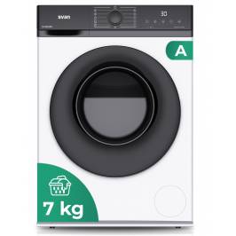 Lavadora Svan,Capacidad 7kg 1200rpm, Clase A. Dimensiones: 845x598x423mm. Color Blanco, Control con Display. Motor Inverter. Programas: Vapor.